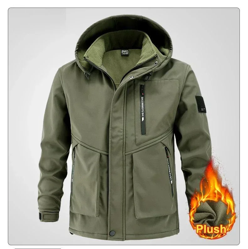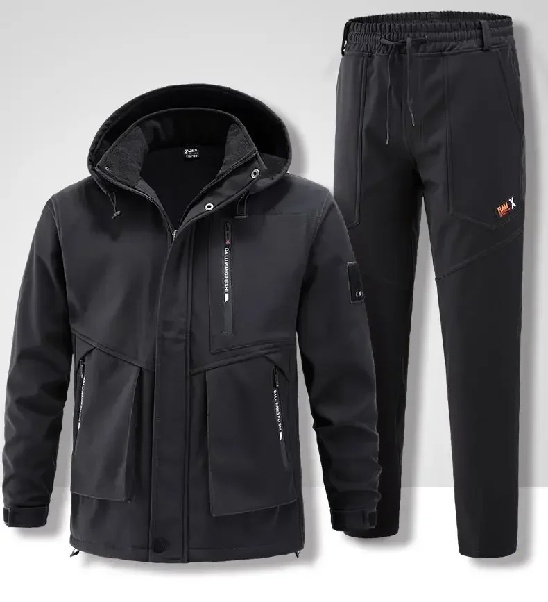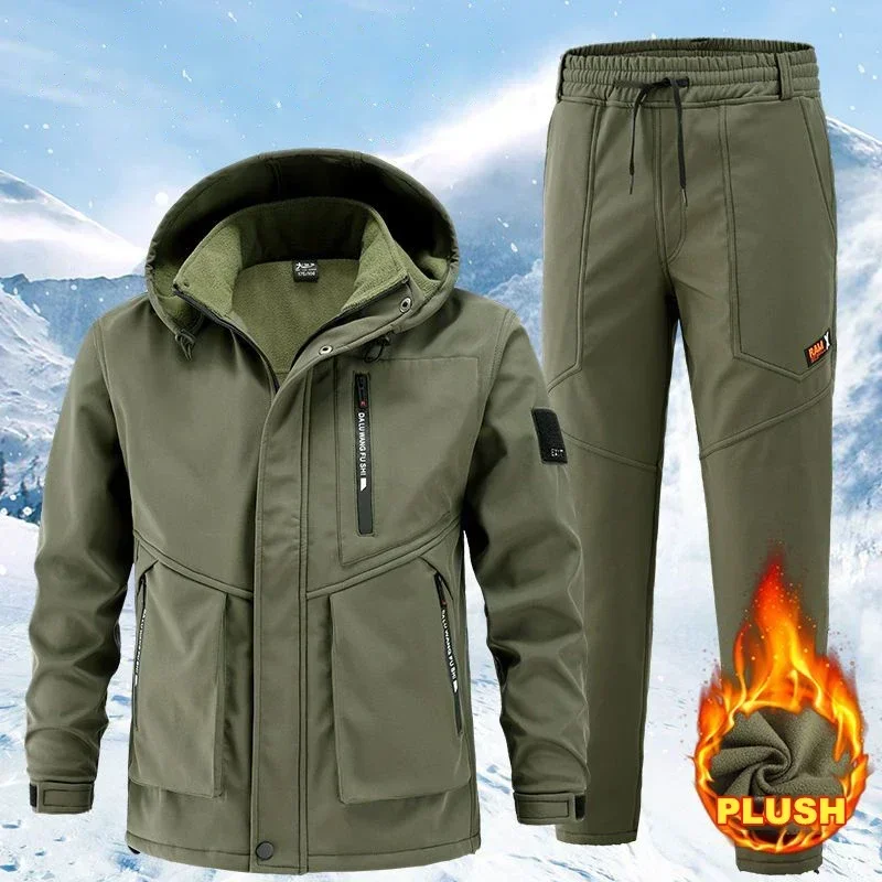 2025 New Hiking Jackets Suit Winter Men's Padded Thickened Cold Windproof Waterproof Warm Riding Outdoor Mountaineering Clothing
