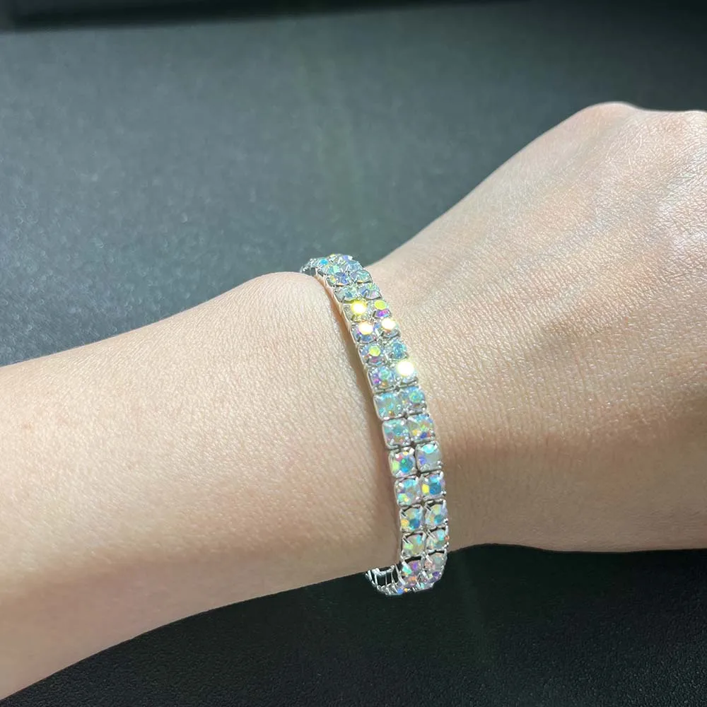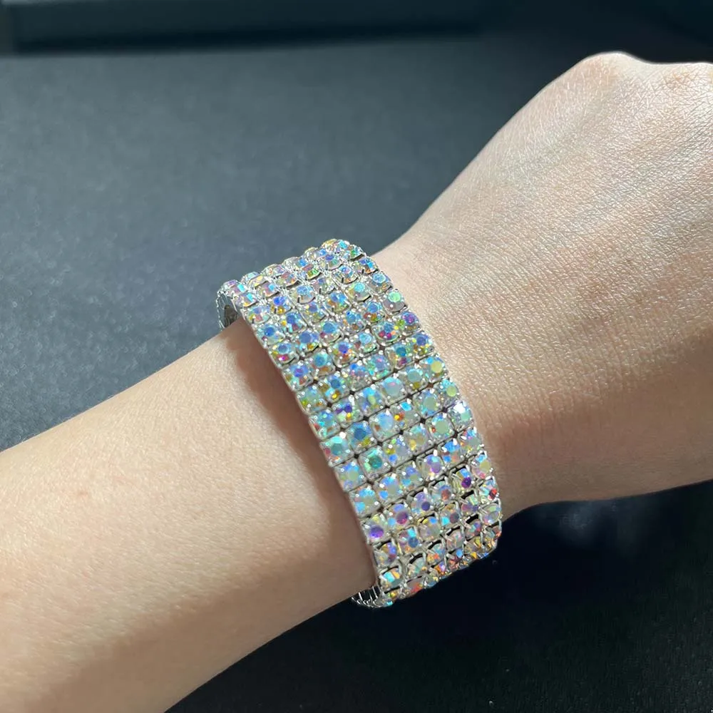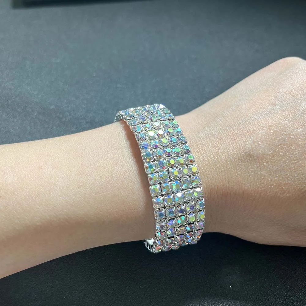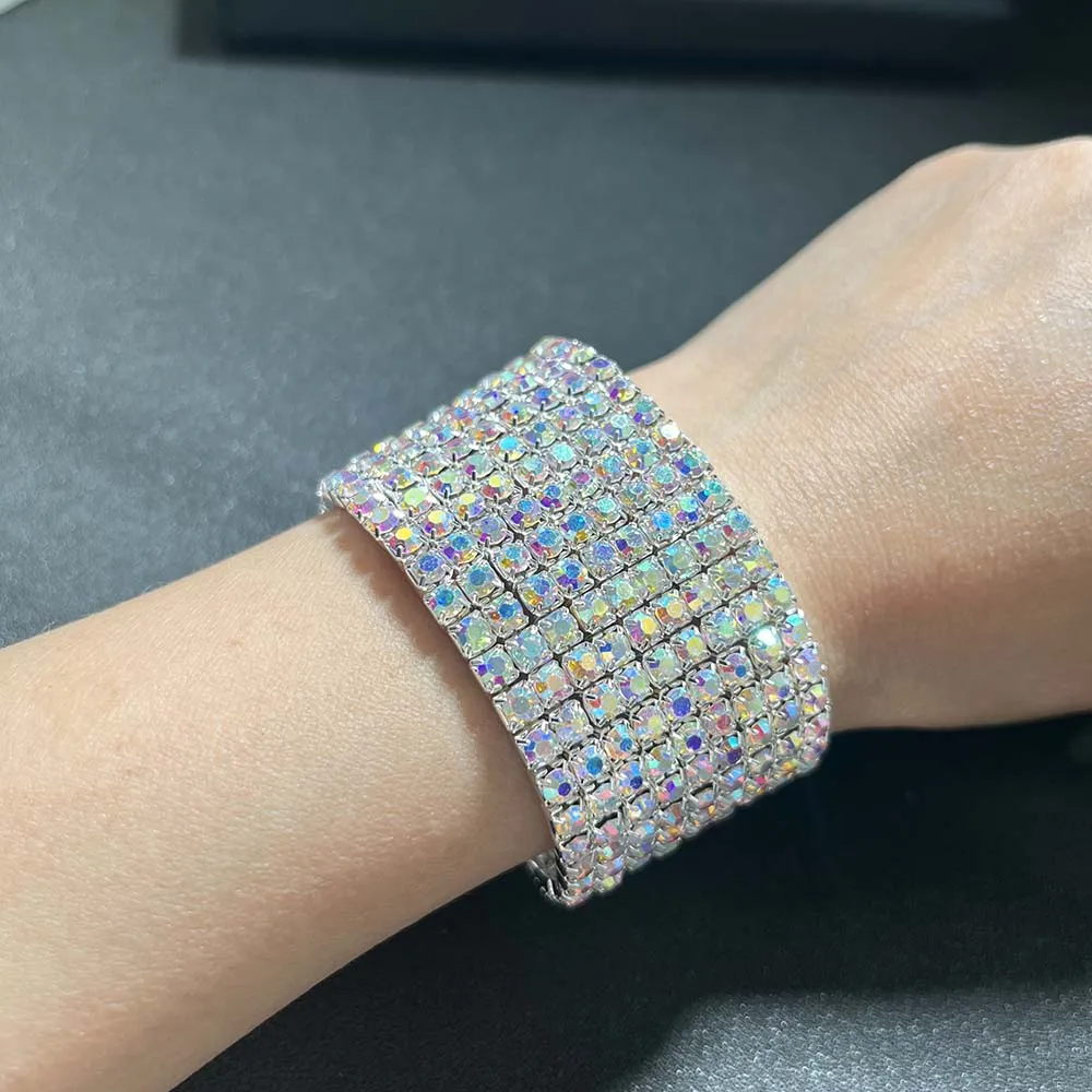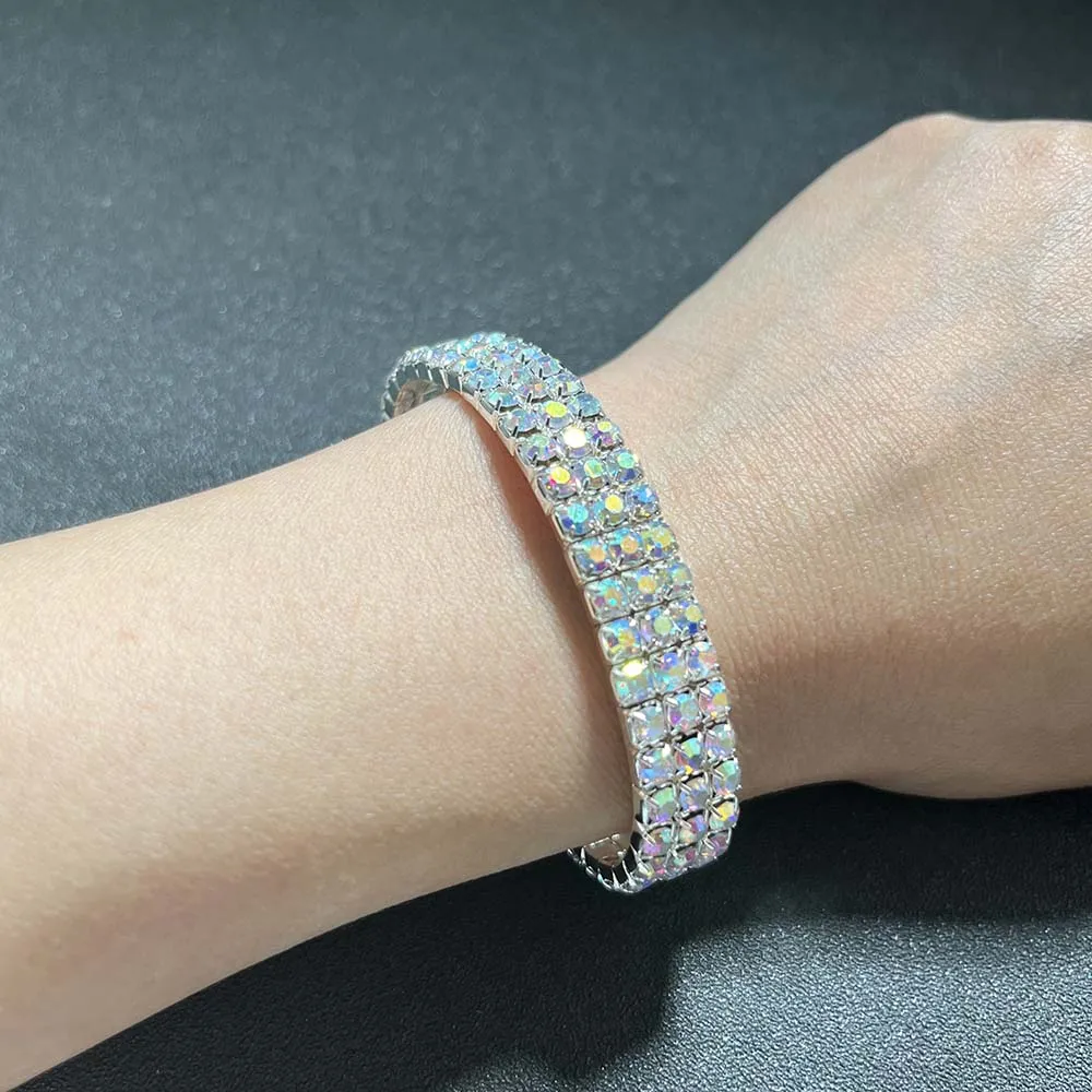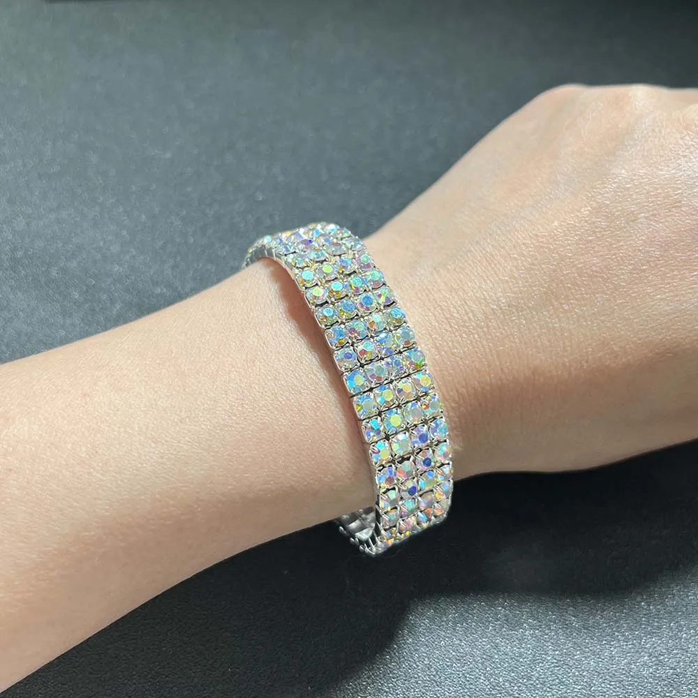 BLIJERY Luxury AB Crystal Elastic Bracelets for Women Bling Iced Out Rhinestone Bracelet Bangle Bridal Wedding Jewelry Accessory