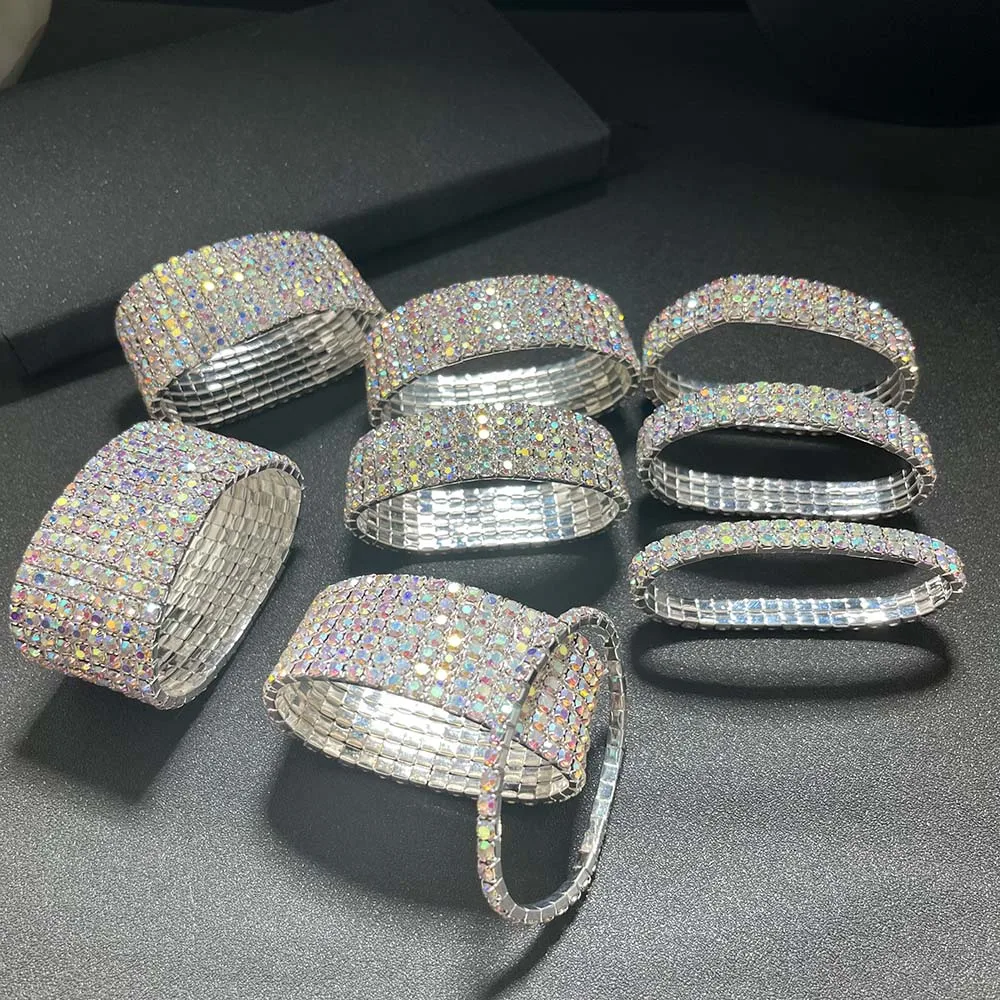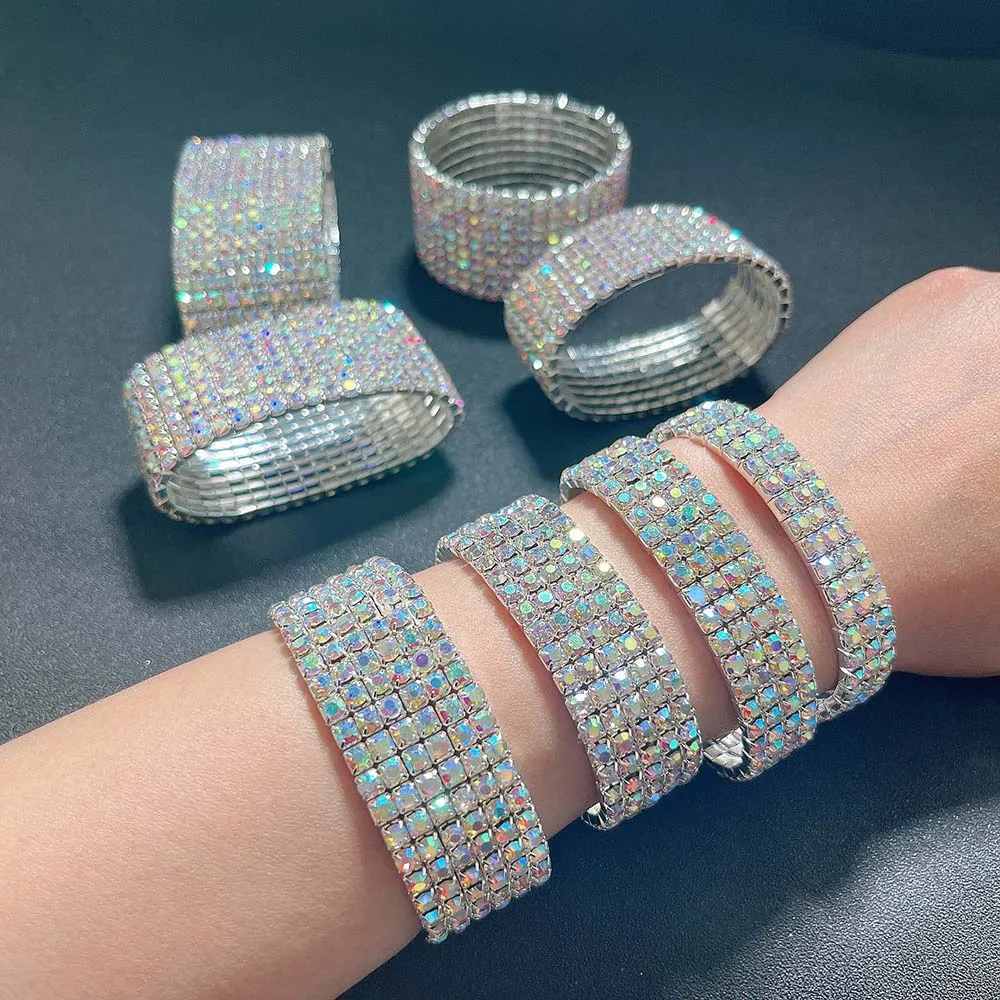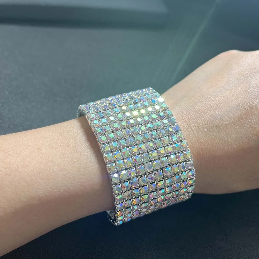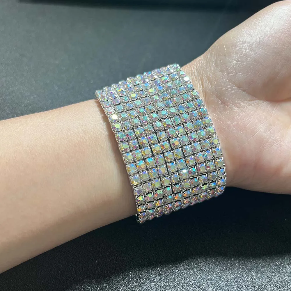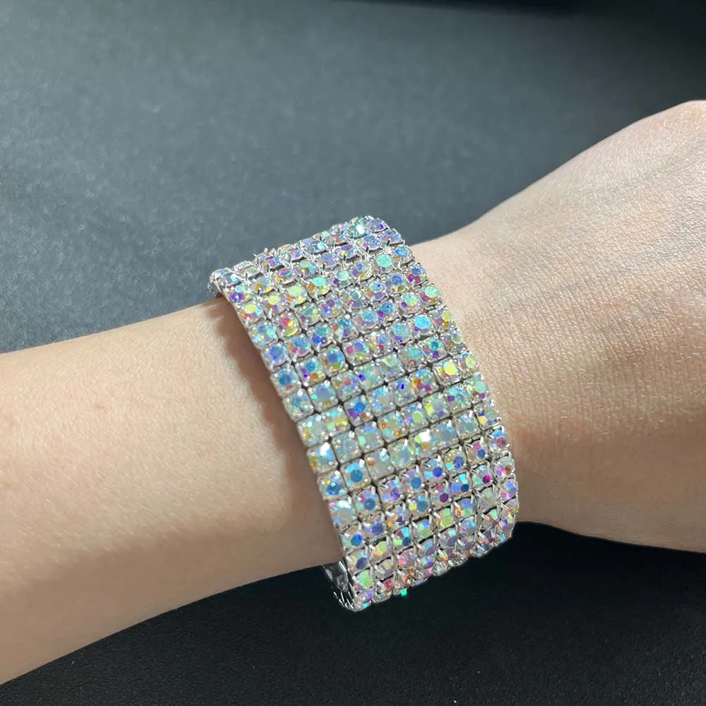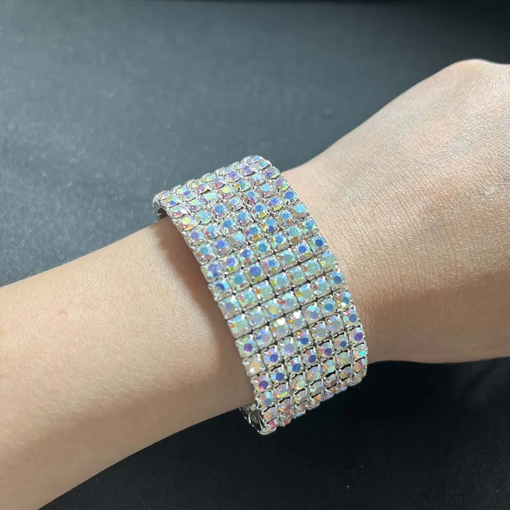 BLIJERY Luxury AB Crystal Elastic Bracelets for Women Bling Iced Out Rhinestone Bracelet Bangle Bridal Wedding Jewelry Accessory