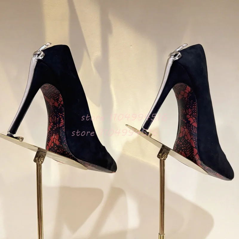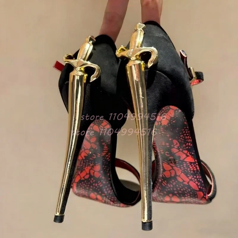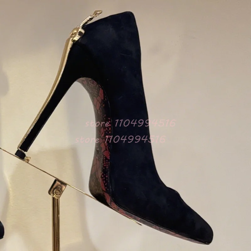 Women Sexy Pointed Toe Stiletto High Pumps Metal Decor Leather Super High Heels 2025 Fashion Party Ladies Summer Gladiator Shoes